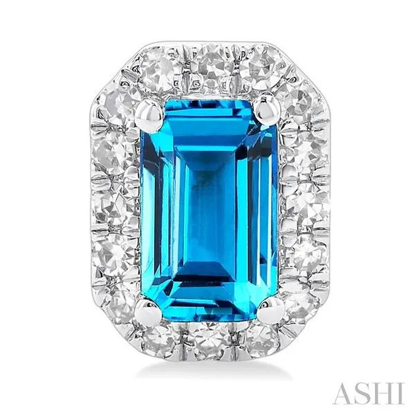 (319) 752-31965x3 MM Octagonal Shape Blue Topaz and 1/8 Ctw Single Cut Diamond Halo Semi-Precious Stud Earrings in 14K White Gold