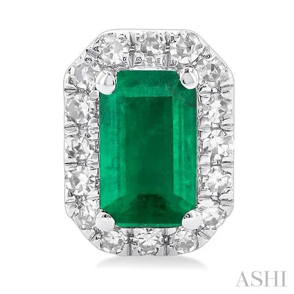 (319) 752-31965x3 MM Octagonal Shape Emerald and 1/8 Ctw Single Cut Diamond Halo Precious Stud Earrings in 14K White Gold