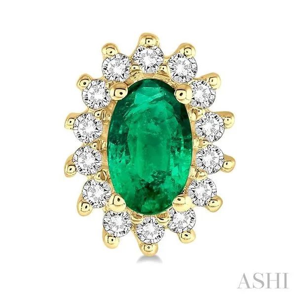 (319) 752-31965x3 MM Oval Cut Center Emerald and 1/5 Ctw Round Cut Diamond Sunflower Precious Earrings in 10K Yellow Gold