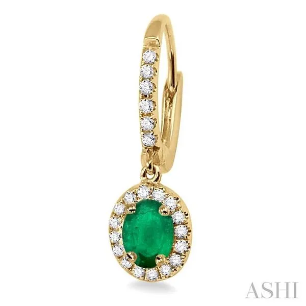 (319) 752-31965x3 MM Oval Cut Emerald and 1/4 Ctw Round Cut Diamond Earrings in 14K Yellow Gold