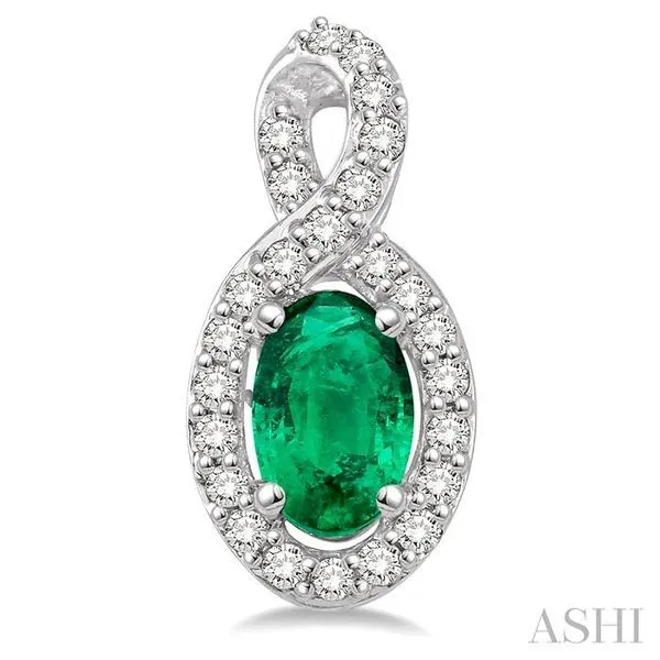 (319) 752-31965x3 MM Oval Cut Emerald and 1/5 Ctw Round Cut Diamond Earrings in 10K White Gold