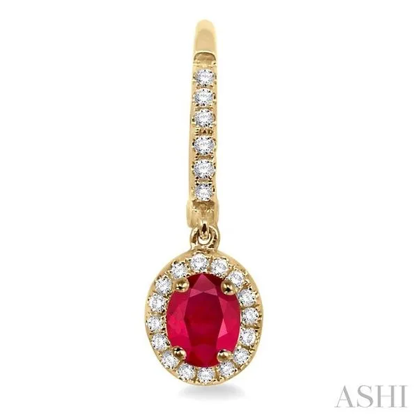 (319) 752-31965x3 MM Oval Cut Ruby and 1/4 Ctw Round Cut Diamond Earrings in 14K Yellow Gold