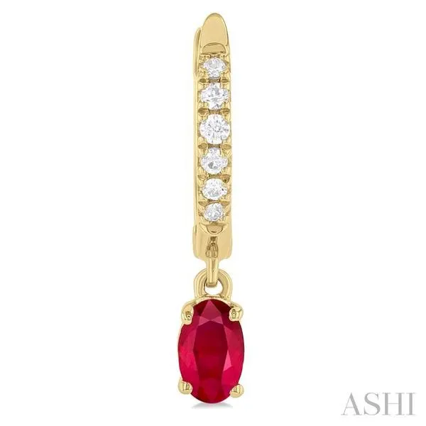 (319) 752-31965x3 MM Oval Cut Ruby and 1/8 Ctw Petite Round Cut Diamond Precious Fashion Huggies in 10K Yellow Gold