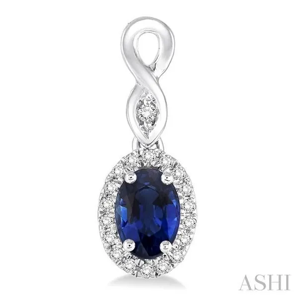 (319) 752-31965x3 MM Oval Cut Sapphire and 1/6 Ctw Round Cut Diamond Earrings in 10K White Gold