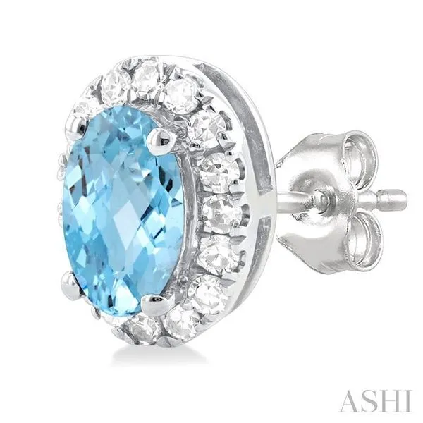 (319) 752-31965x3 MM Oval Shape Aquamarine and 1/8 Ctw Single Cut Diamond Halo Semi-Precious Stud Earrings in 10K White Gold