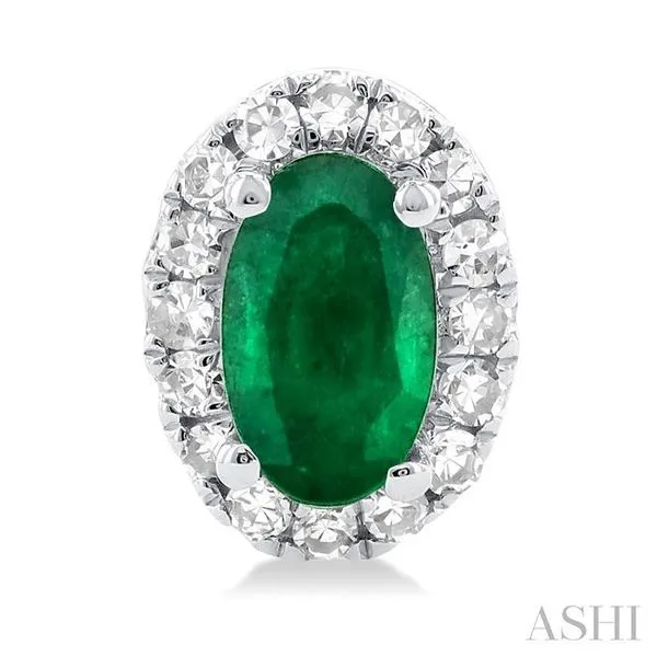 (319) 752-31965x3 MM Oval Shape Emerald and 1/8 Ctw Single Cut Diamond Halo Precious Stud Earrings in 14K White Gold
