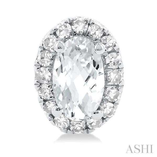 (319) 752-31965x3 MM Oval Shape White Topaz and 1/8 Ctw Single Cut Diamond Halo Semi-Precious Stud Earrings in 10K White Gold