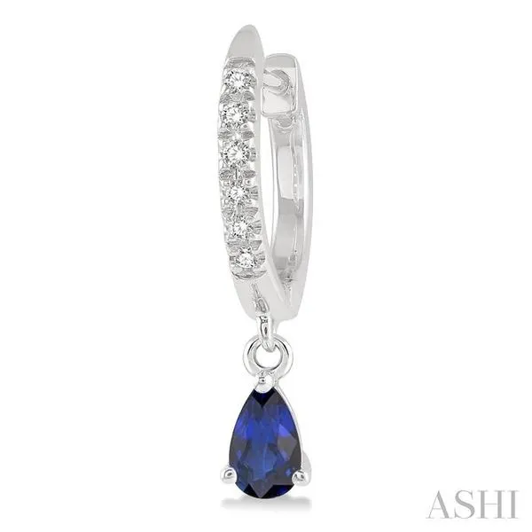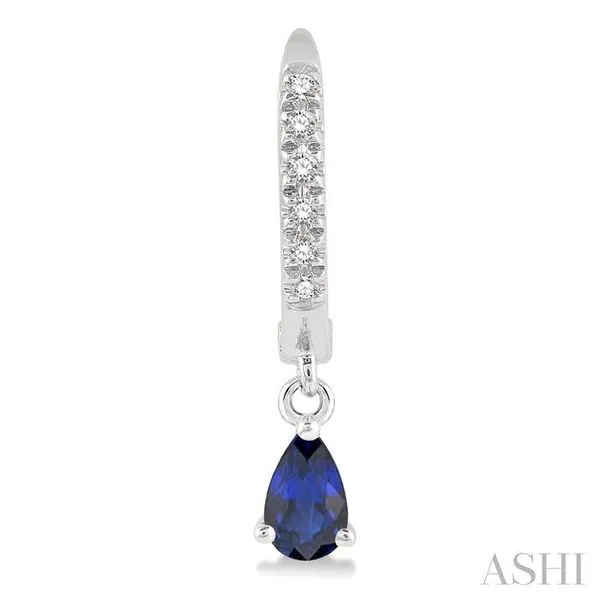(319) 752-31965x3 MM Pear Cut Sapphire and 1/8 Ctw Round Cut Diamond Petite Fashion Huggie Earrings in 10K White Gold