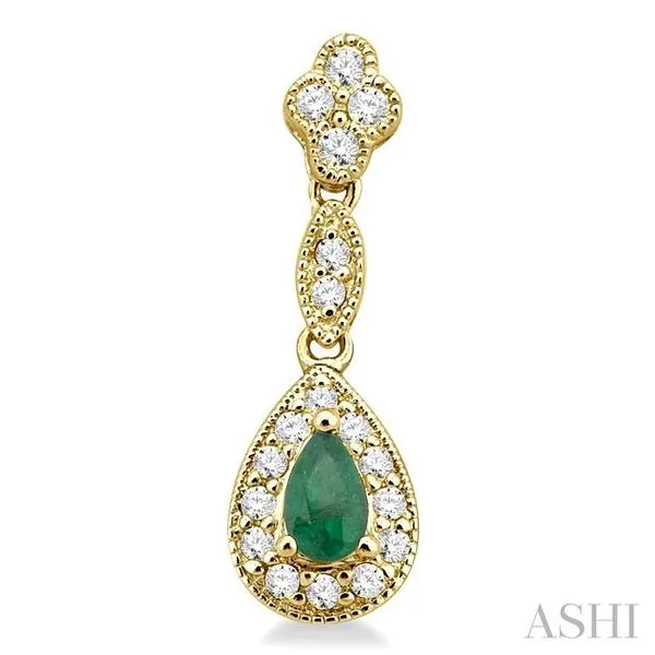 (319) 752-31965x3 MM Pear Shape Emerald and 1/3 Ctw Round Cut Diamond Earrings in 14K Yellow Gold