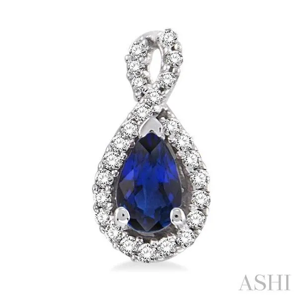 (319) 752-31965x3 MM Pear Shape Sapphire and 1/6 Ctw Round Cut Diamond Earrings in 14K White Gold