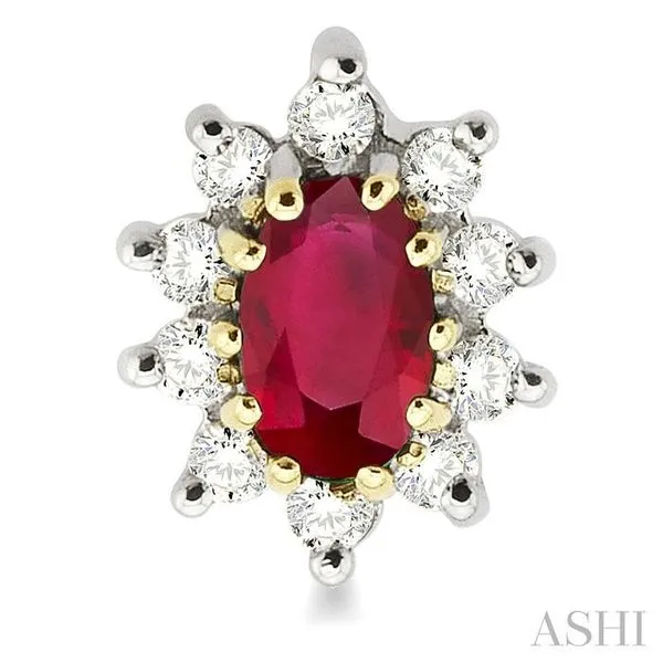 (319) 752-31965x3MM Oval Cut Ruby and 1/4 Ctw Round Cut Diamond Earrings in 14K Yellow Gold