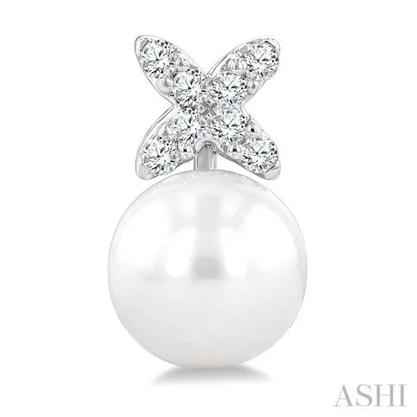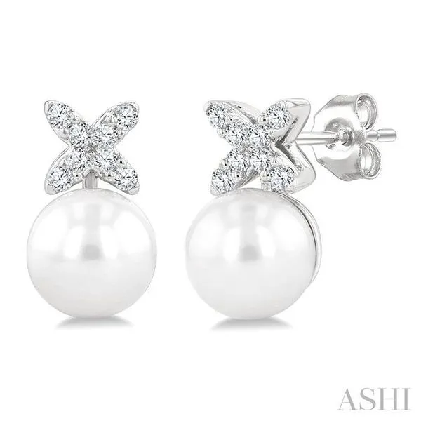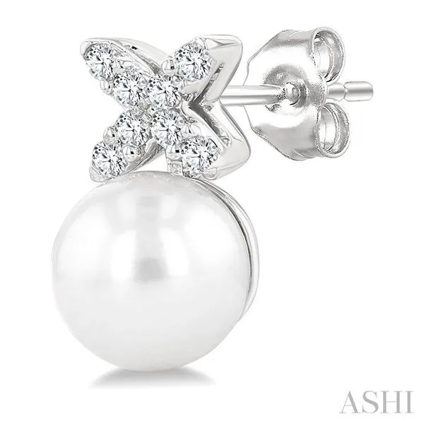 (319) 752-31966 MM Cultured Pearl and 1/10 Ctw Round Cut Diamond Floral Fashion Earrings in 14K White Gold
