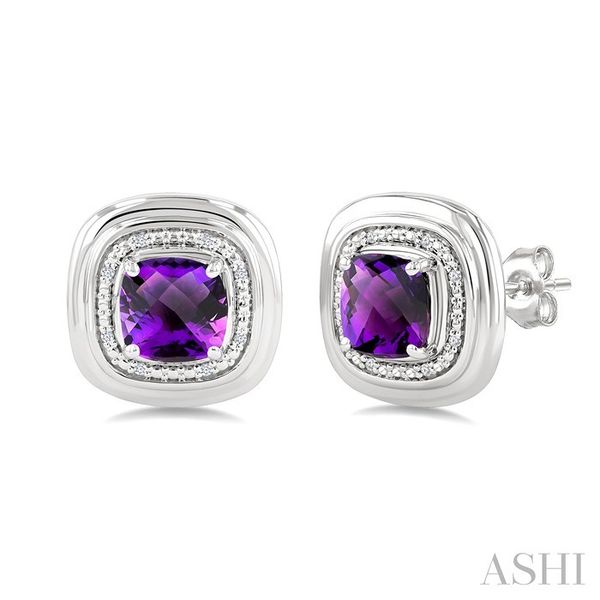6 MM Cushion Shape Amethyst and 1/20 Ctw Round Cut Diamond Bold Semi-Precious Earrings in Sterling Silver Image 2 Becker's Jewelers Burlington, IA