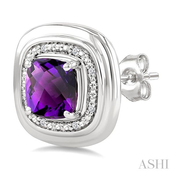 6 MM Cushion Shape Amethyst and 1/20 Ctw Round Cut Diamond Bold Semi-Precious Earrings in Sterling Silver Image 3 Becker's Jewelers Burlington, IA