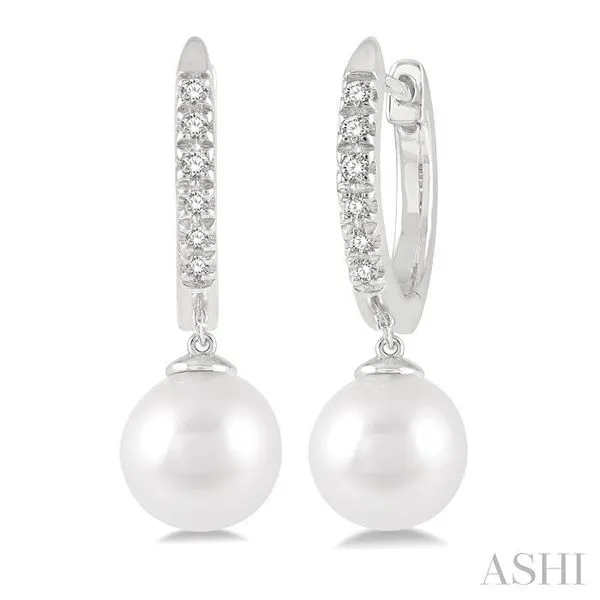 (319) 752-31966 MM Round Shape Cultured Pearls and 1/8 Ctw Round Cut Diamond Drop Petite Huggie Earrings 10K White Gold