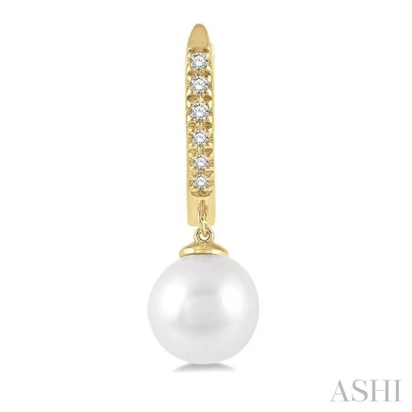 (319) 752-31966 MM Round Shape Cultured Pearls and 1/8 Ctw Round Cut Diamond Drop Petite Huggie Earrings 10K Yellow Gold