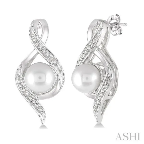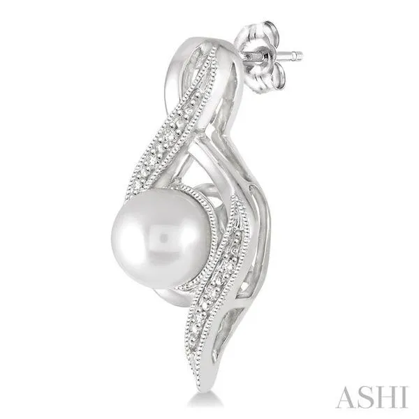 (319) 752-31966.5 MM Round Shape Cultured Pearls and 1/20 Ctw Round Cut Diamond Earrings in Sterling Silver