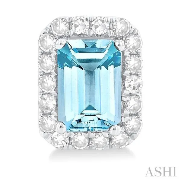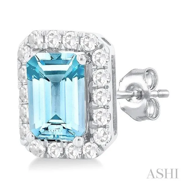 (319) 752-31966x4 MM Octagonal Shape Aquamarine and 1/4 Ctw Round Cut Diamond Halo Semi-Precious Stud Earrings in 10K White Gold