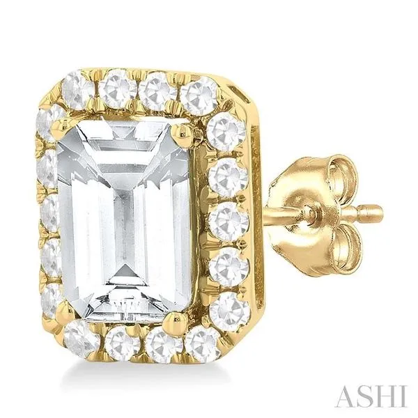 (319) 752-31966x4 MM Octagonal Shape White Topaz and 1/4 Ctw Round Cut Diamond Halo Semi-Precious Stud Earrings in 10K Yellow Gold