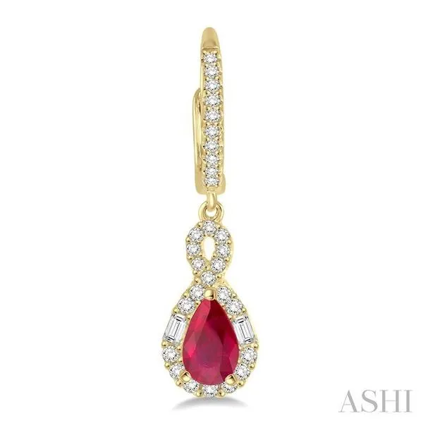 (319) 752-31966x4 MM Pear Cut Ruby and 1/2 Ctw Round Cut Diamond Precious Earrings in 14K Yellow Gold
