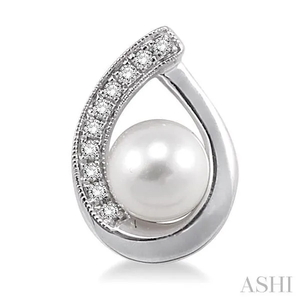 (319) 752-31966x6 MM Round Shape Cultured Pearls and 1/10 Ctw Round Cut Diamond Earrings in 10K White Gold