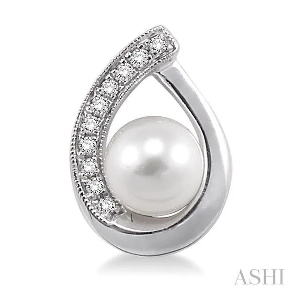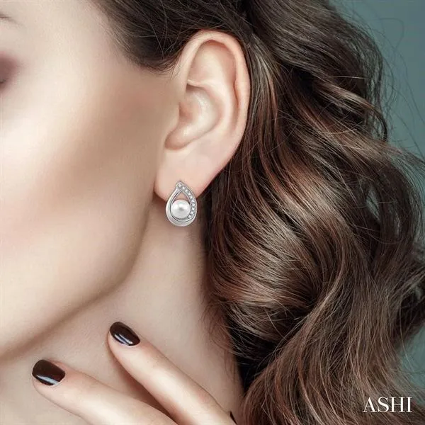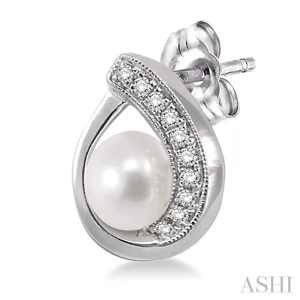 (319) 752-31966x6 MM Round Shape Cultured Pearls and 1/10 Ctw Round Cut Diamond Earrings in 14K White Gold