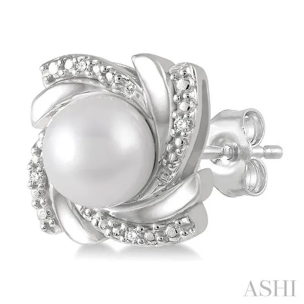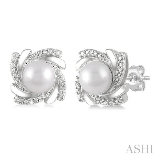 (319) 752-31966x6 MM Round Shape Cultured Pearls and 1/50 Ctw Swirl Round Cut Diamond Earring in Sterling Silver