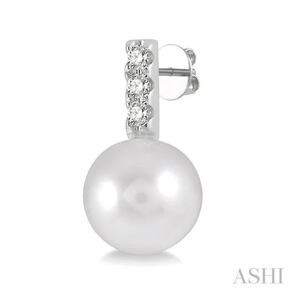 (319) 752-31967 MM Cultured Pearls and 1/10 Ctw Round Cut Diamond Earrings in 14K White Gold