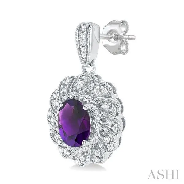 (319) 752-31967X5 MM Oval Cut Amethyst and 1/20 Ctw Round Cut Diamond Semi-Precious Earring in Sterling Silver