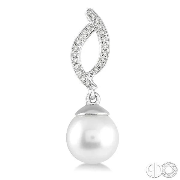 7x7 MM Round Cut Cultured Pearl and 1/6 Ctw Round Cut Diamond Earrings in 14K White Gold Image 2 Becker's Jewelers Burlington, IA