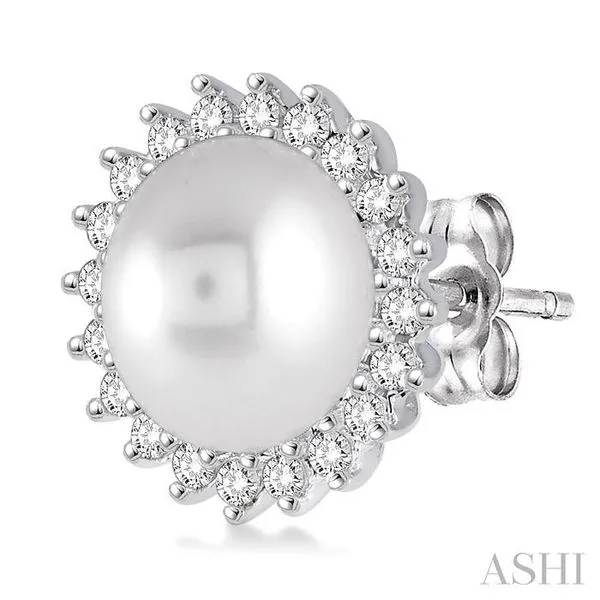 (319) 752-31967x7 MM Round Shape Cultured Pearls and 1/4 Ctw Round Cut Diamond Earrings in 14K White Gold