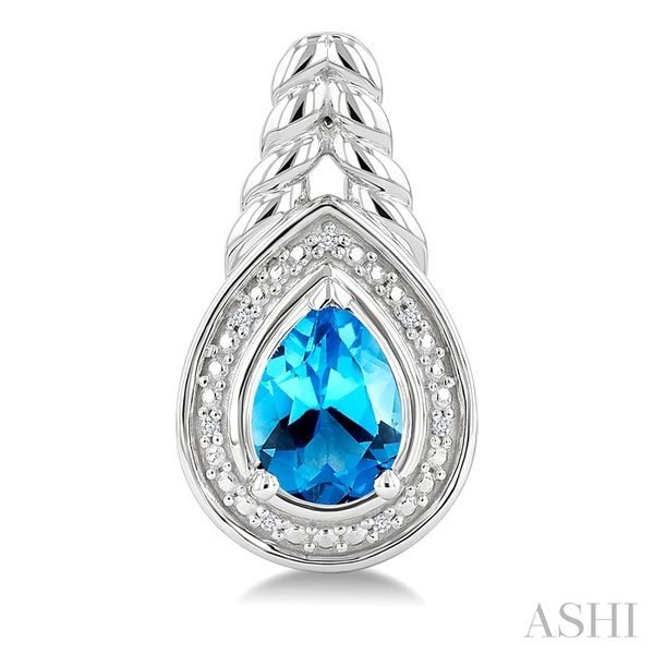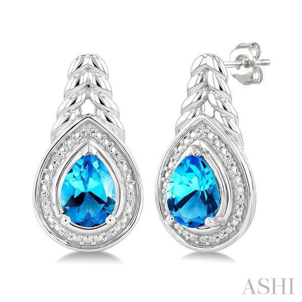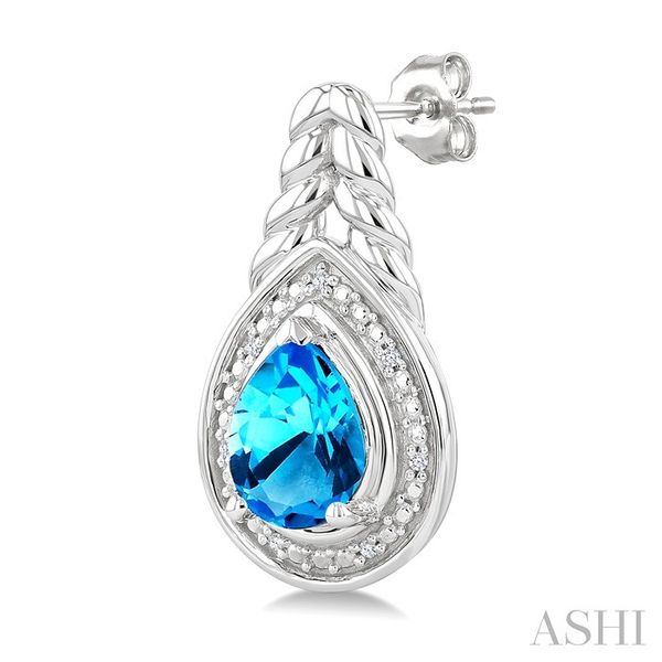 8X5 MM Pear Shape Blue Topaz and 1/20 Ctw Round Cut Diamond Semi-Precious Earrings in Sterling Silver Image 2 Becker's Jewelers Burlington, IA