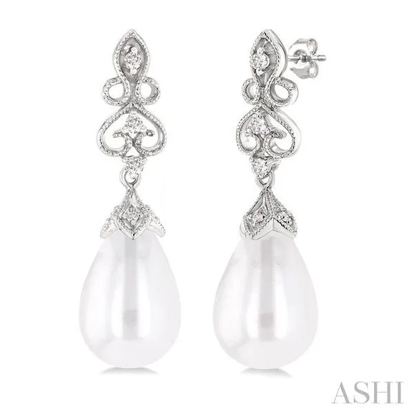(319) 752-31968X6 MM Cultured Pearl and 1/20 Ctw Round Cut Diamond Earrings in 10K White Gold