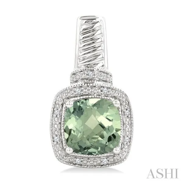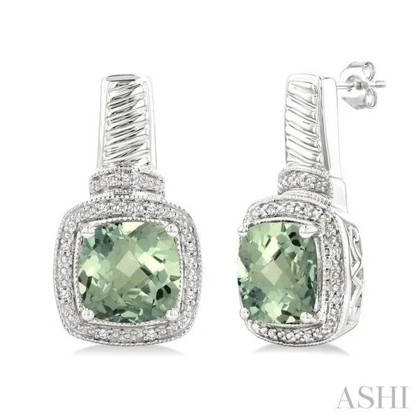 (319) 752-31968x8 MM Cushion Shape Green Amethyst and 1/20 Ctw Single Cut Diamond Earrings in Sterling Silver