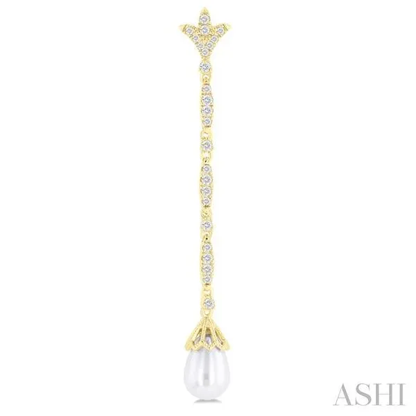 (319) 752-31969X7 MM Marquise Link Teardrop Cultured Pearl and 1/2 Ctw Round Cut Diamond Long Earring in 14K Yellow Gold