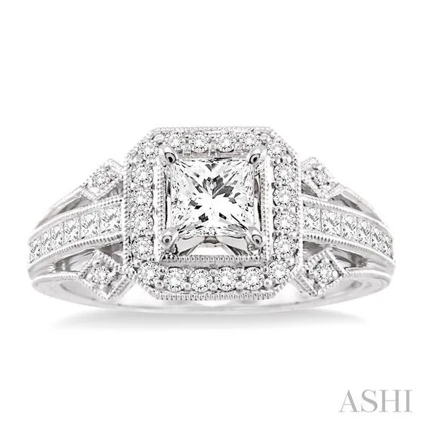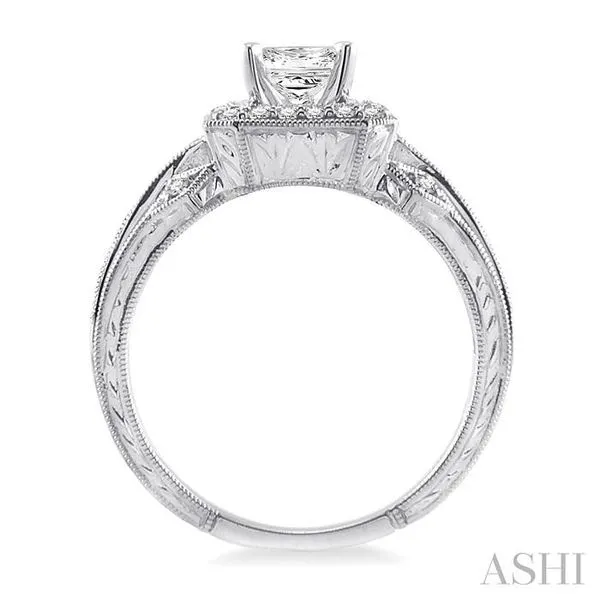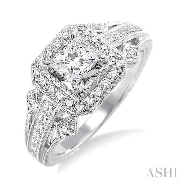 (319) 752-31961/2 Ctw Round and Princess Cut Diamond Semi-Mount Engagement Ring 14K White Gold