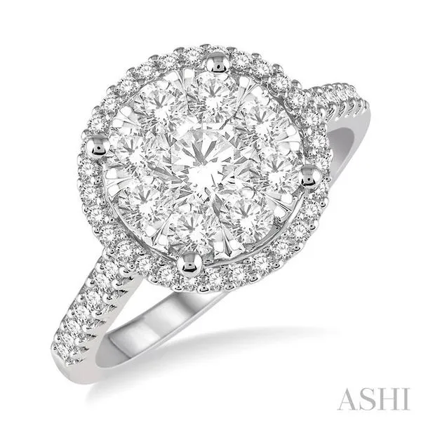 1 Ctw Round Diamond Lovebright Halo Engagement Ring in 14K White and Yellow Gold Image 2 Becker's Jewelers Burlington, IA