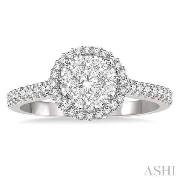 (319) 752-31961/2 Ctw Round Diamond Lovebright Halo Engagement Ring in 14K White and Yellow Gold
