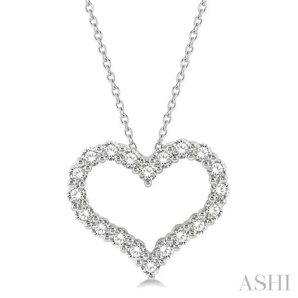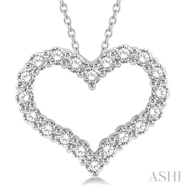 1 1/2 Ctw Heart Shape Round Cut Diamond Pendant With Chain in 14K White Gold Image 2 Becker's Jewelers Burlington, IA