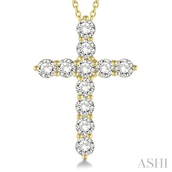 1 1/2 Ctw Round Cut Diamond Cross Pendant in 14K Yellow Gold with Chain Image 2 Becker's Jewelers Burlington, IA