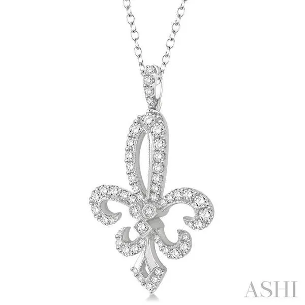 (319) 752-31961 1/2 Ctw Round Cut Diamond Fleur De Lis Pendant in 14K White Gold with Chain