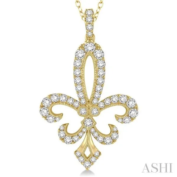 (319) 752-31961 1/2 Ctw Round Cut Diamond Fleur De Lis Pendant in 14K Yellow Gold with Chain