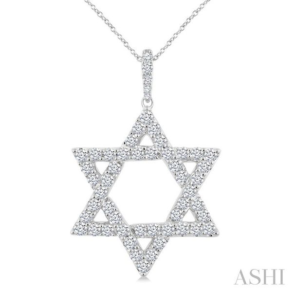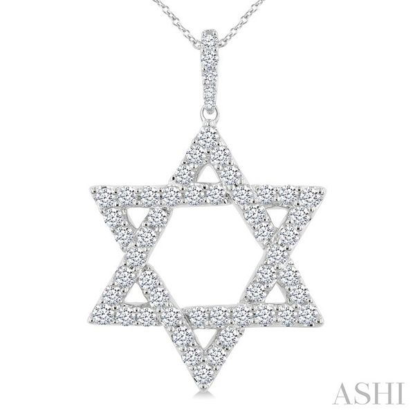 1 1/2 Ctw Star of David Round Cut Diamond Fashion Pendant With Chain in 14K White Gold Image 2 Becker's Jewelers Burlington, IA