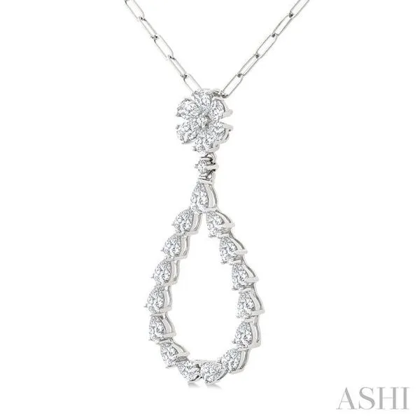 (319) 752-31961 7/8 Ctw Floral Open Window Pear and Round Cut Diamond Dangle Fashion Pendant With Chain in 14K White Gold
