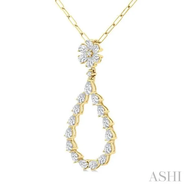 (319) 752-31961 7/8 Ctw Floral Open Window Pear and Round Cut Diamond Dangle Fashion Pendant With Chain in 14K Yellow Gold