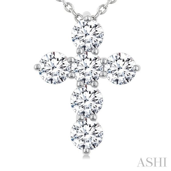 1 Ctw 6-Stone Round Cut Diamond Fashion Cross Pendant With Chain in 14K White Gold Image 2 Becker's Jewelers Burlington, IA