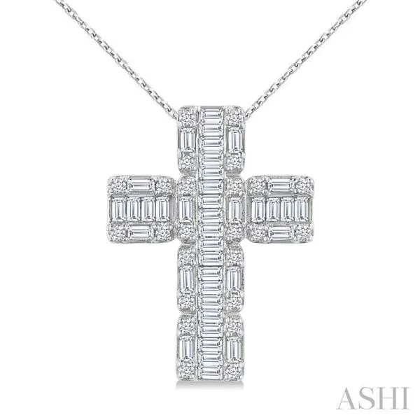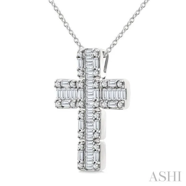 (319) 752-31961 Ctw Fusion Baguette and Round Cut Diamond Cross Fashion Pendant With Chain in 14K White Gold