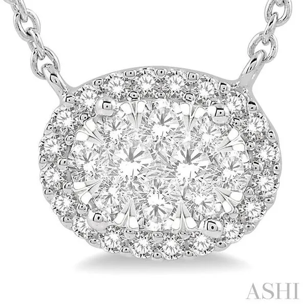 (319) 752-31961 Ctw Oval Shape Round Cut Diamond Lovebright Pendant With Chain in 14K White Gold
