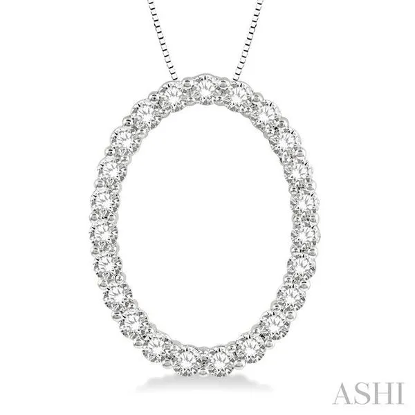(319) 752-31961 Ctw Oval Shape Window Round Cut Diamond Pendant With Chain in 14K White Gold