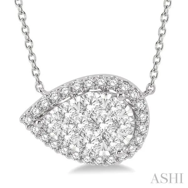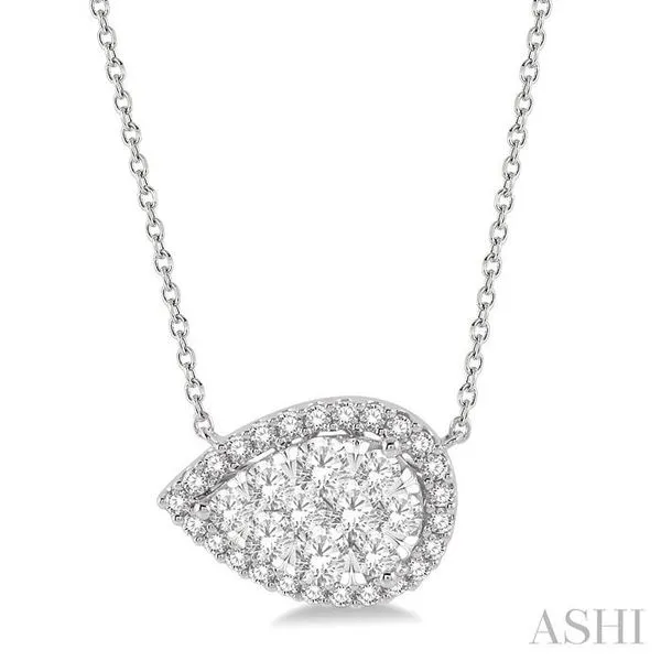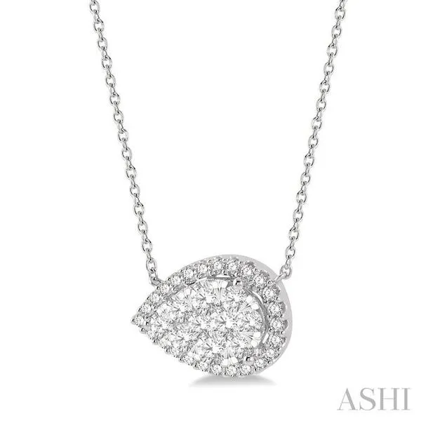 (319) 752-31961 Ctw Pear Shape Round Cut Diamond Lovebright Pendant With Chain in 14K White Gold
